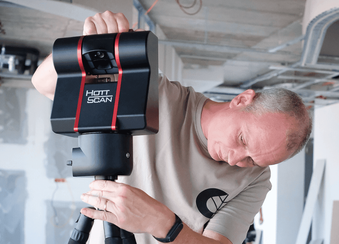 Přístup našeho digitálního truhlářství poznáte hned na začátku naší společné cesty za novým interiérem. Tím začátkem je zaměření celého prostoru speciálním 3D skenerem.
