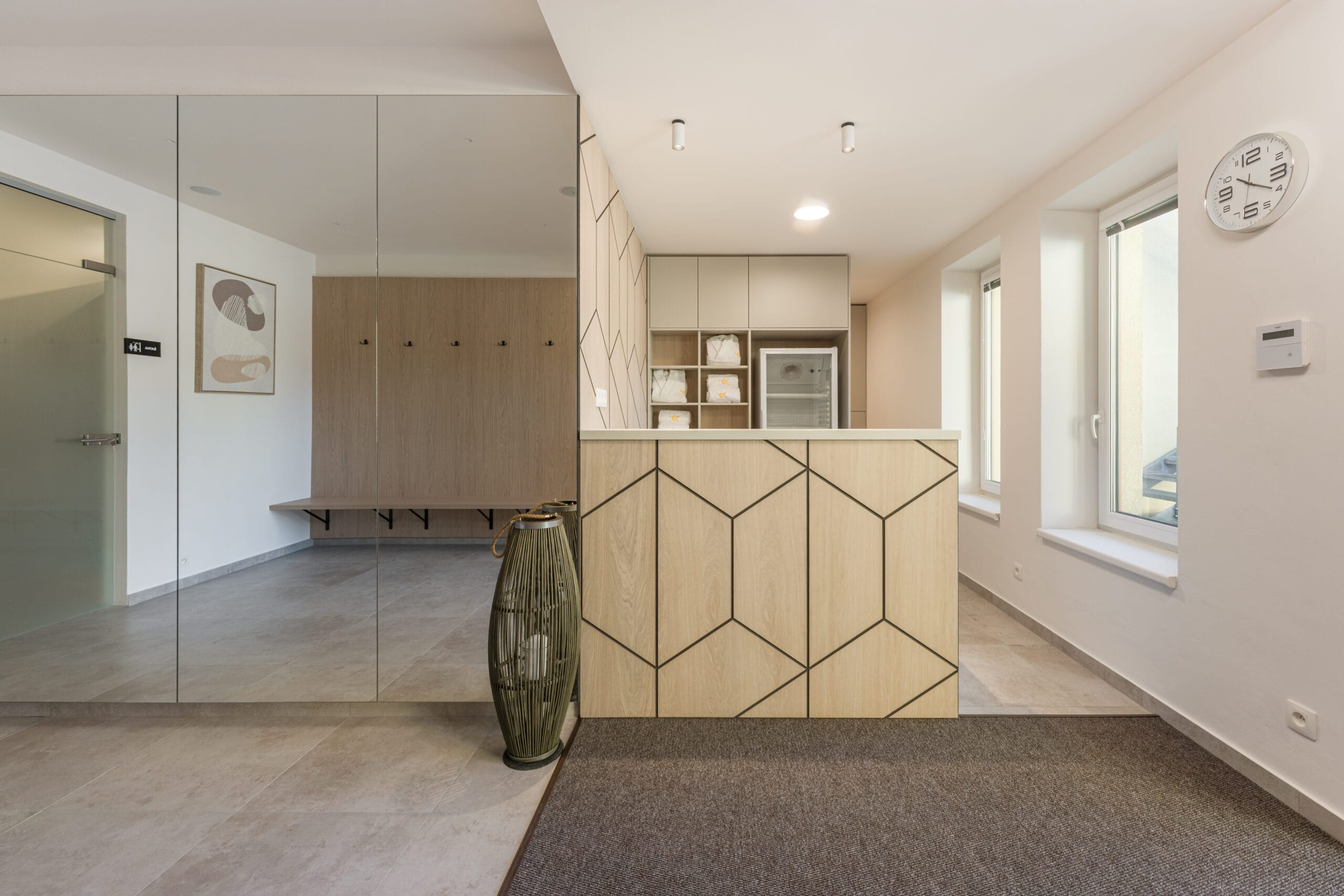 Realizovali jsme nové interiéry hotelového wellness provozu v Jeseníkách a dodávali kompletní truhlářské vybavení šaten a zázemí pro hosty. Cílem bylo vytvořit prostor, který bude odolný vůči náročnému provozu a zároveň bude působit klidně, přirozeně a příjemně – v duchu prostředí horského hotelu a relaxačního charakteru wellness.